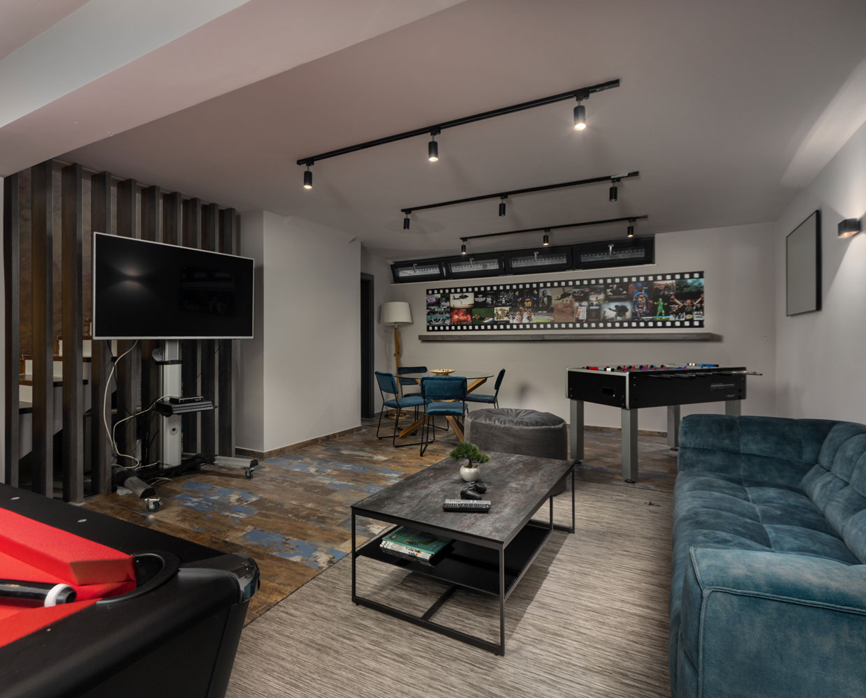 U podrumu aneksa je uređen party-room s iznimnom zabavnom ponudom koja obuhvaća biljar, pikado, stolni nogomet i PlayStation konzolu.